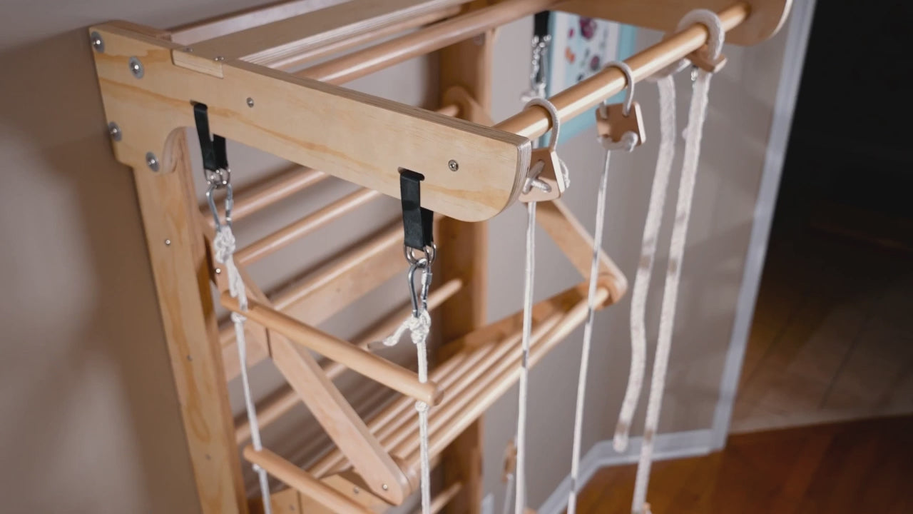 Turn energy into strength and fun! The Swedish Ladder (or 'Climbing Wall') is the perfect piece of gear to help kids climb, stretch, swing, and build super-strong bodies right in their playroom, bedroom, or basement. It's a classic piece of gymnastics equipment made just for active kids!